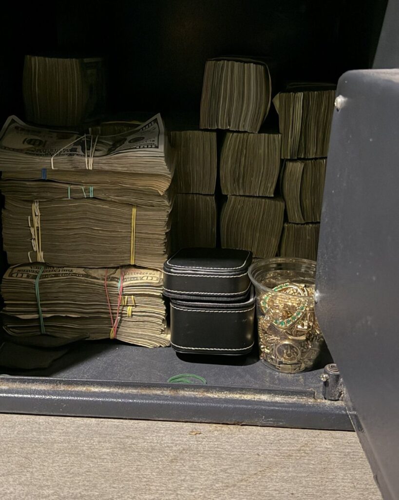 Entre los indicios se reportó cerca de USD 1 millón en efectivo, 14 vehículos, lotes de joyas, 20 celulares y 6 armas de fuego (dos largas y cuatro cortas).